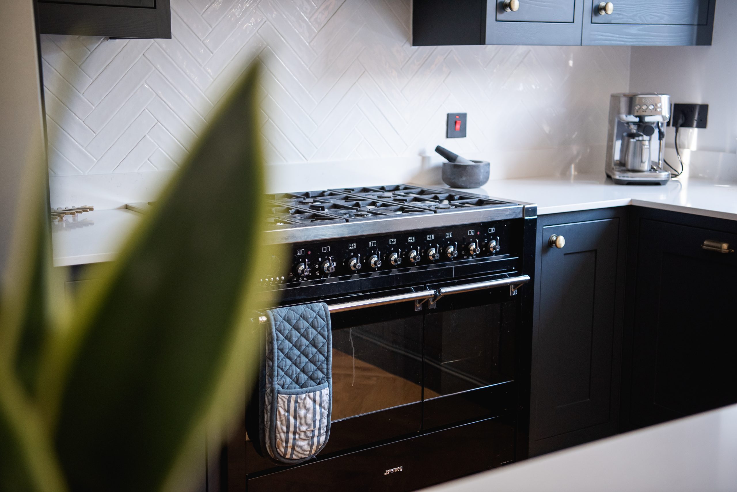 We are very satisfied with our kitchen. It was slightly out of our planned budget but we’re very pleased with the end result. Our favourite feature is the combination of colours with the brass fixtures, black(ish) doors and white worktops. Also the quality of the units is great and our fitter was brilliant, the quality of his work is excellent.