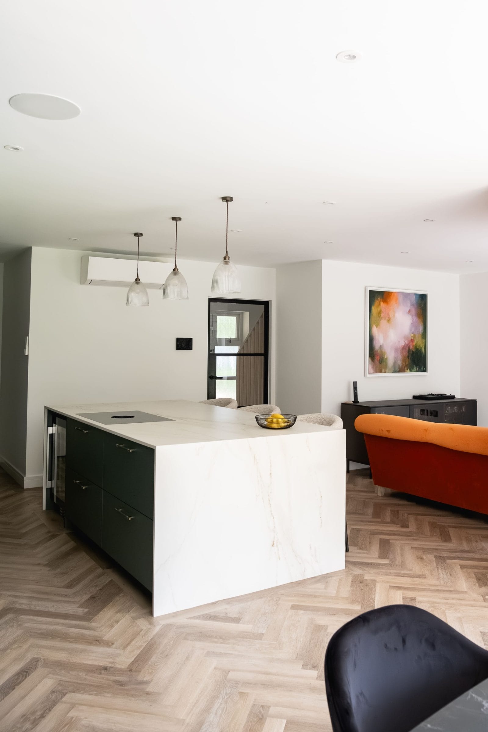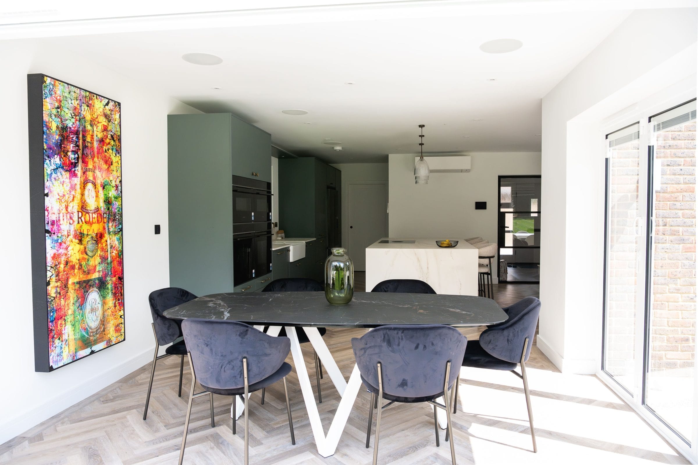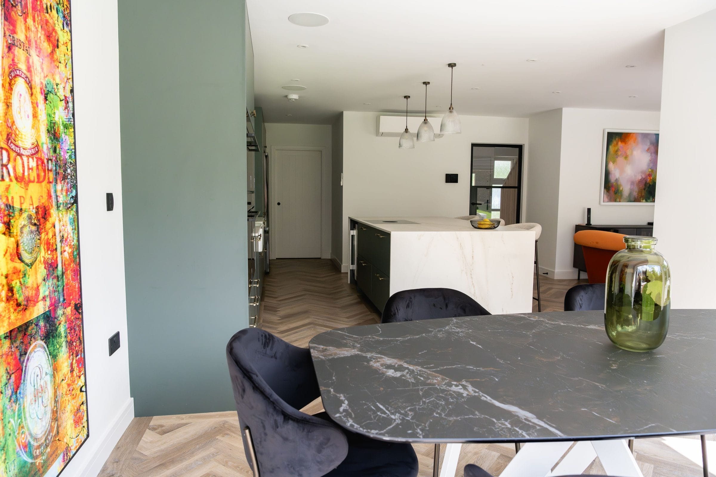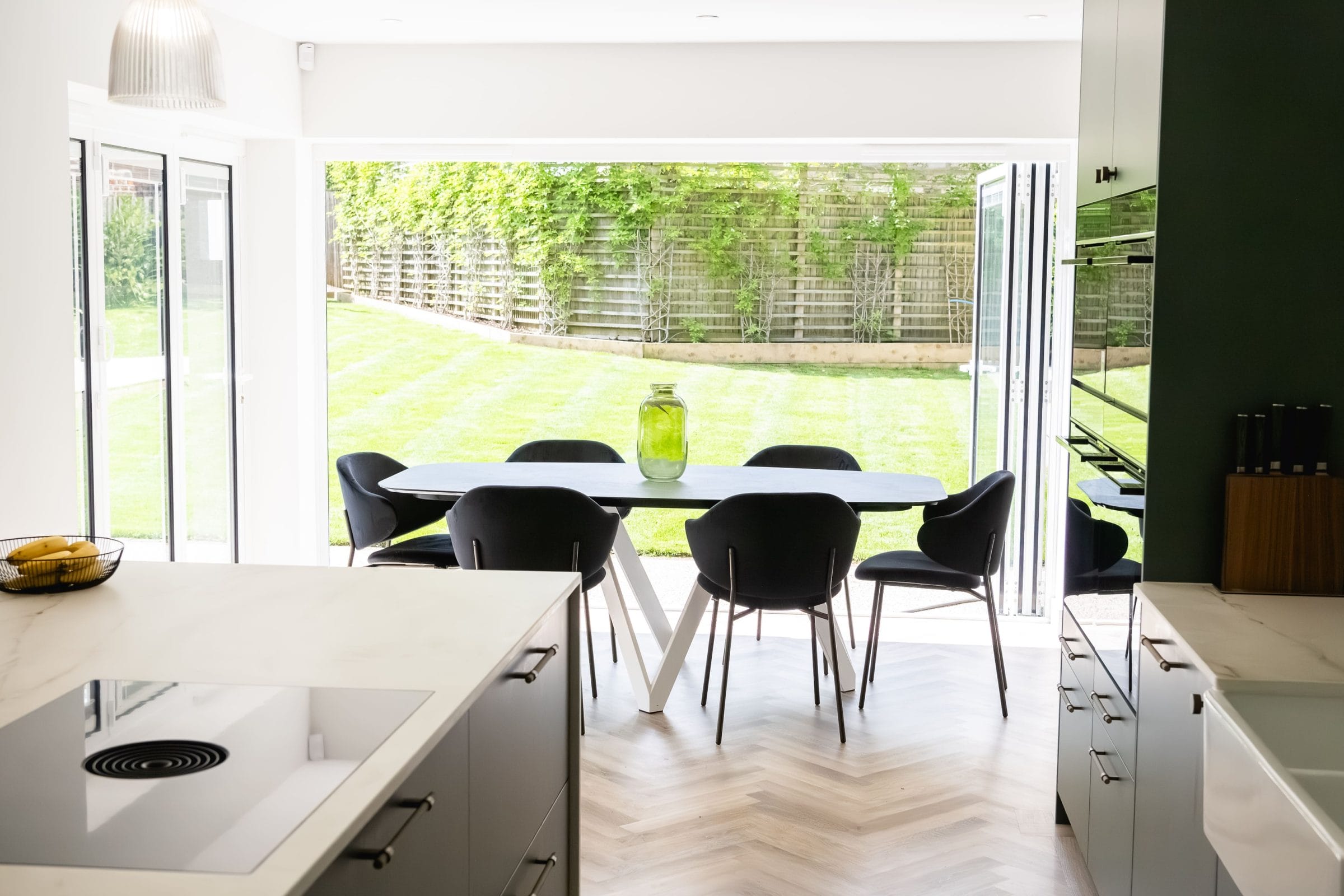 In this bright and inviting space, we combined contemporary style with practical functionality to create an open-plan kitchen diner for the family to enjoy.