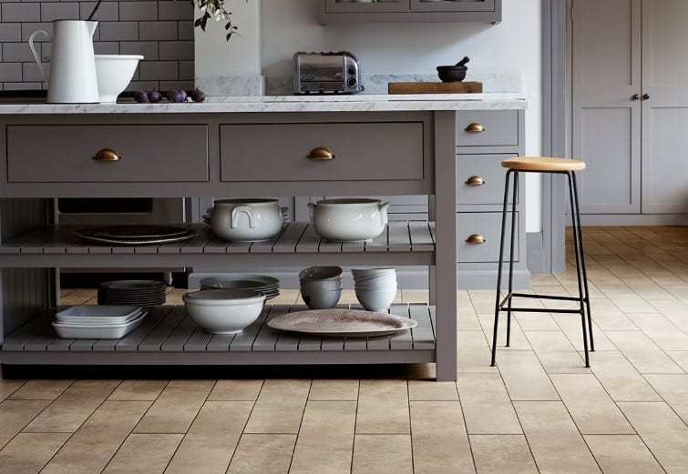 Patterned – if your cupboards and wall tiles are plain you can afford to be a little more adventurous with the flooring design. Why not opt for a patterned tile? From intricate designs to geometric shapes, your floor could be a real talking point. Amtico’s Décor Corona and Geo from its Signature Collection are created using individually cut and bevelled pieces for a Victorian-inspired marble look.